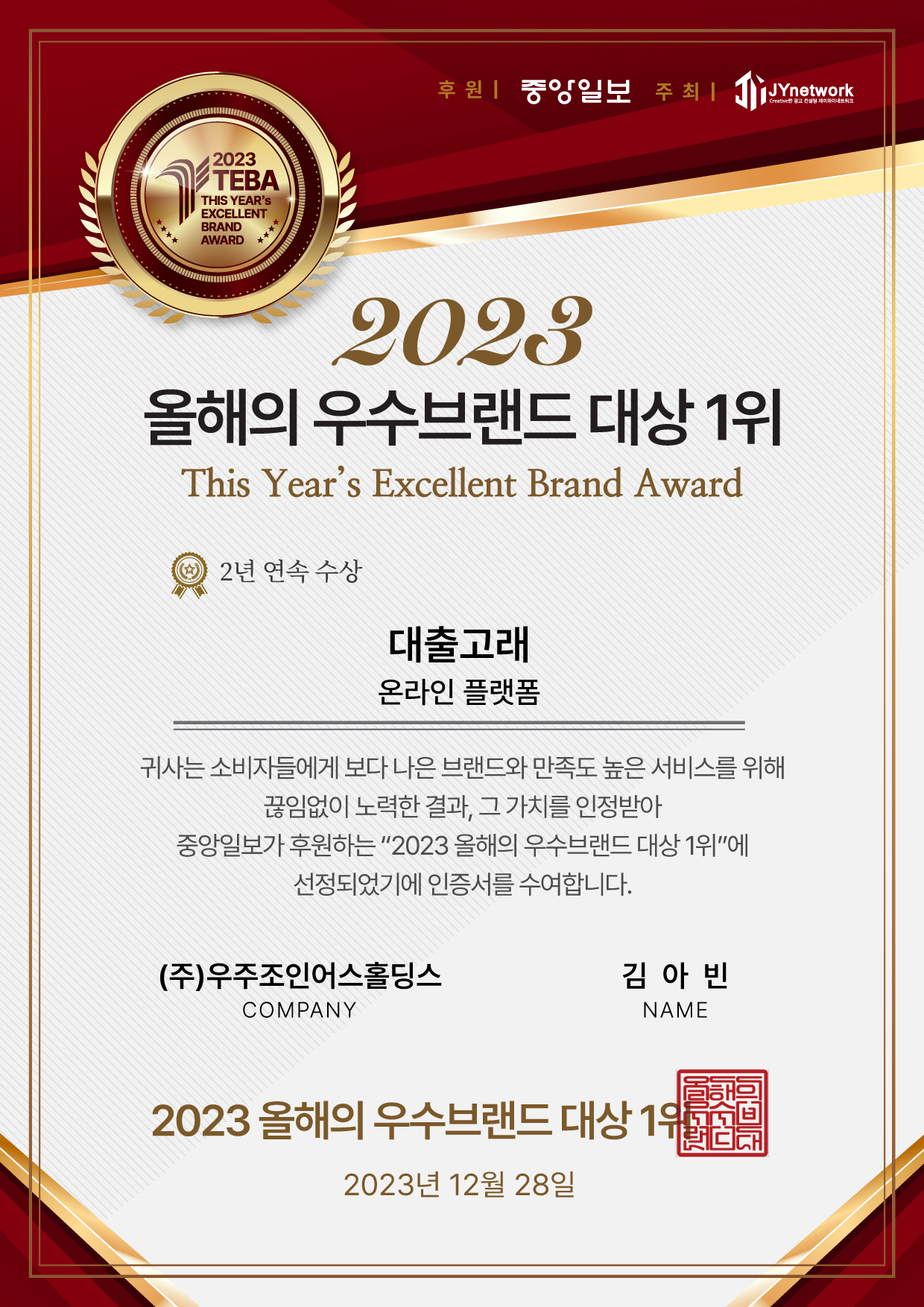 중앙일보사의 후원과 종합홍보대행사인 제이와이네트워크가 주최한