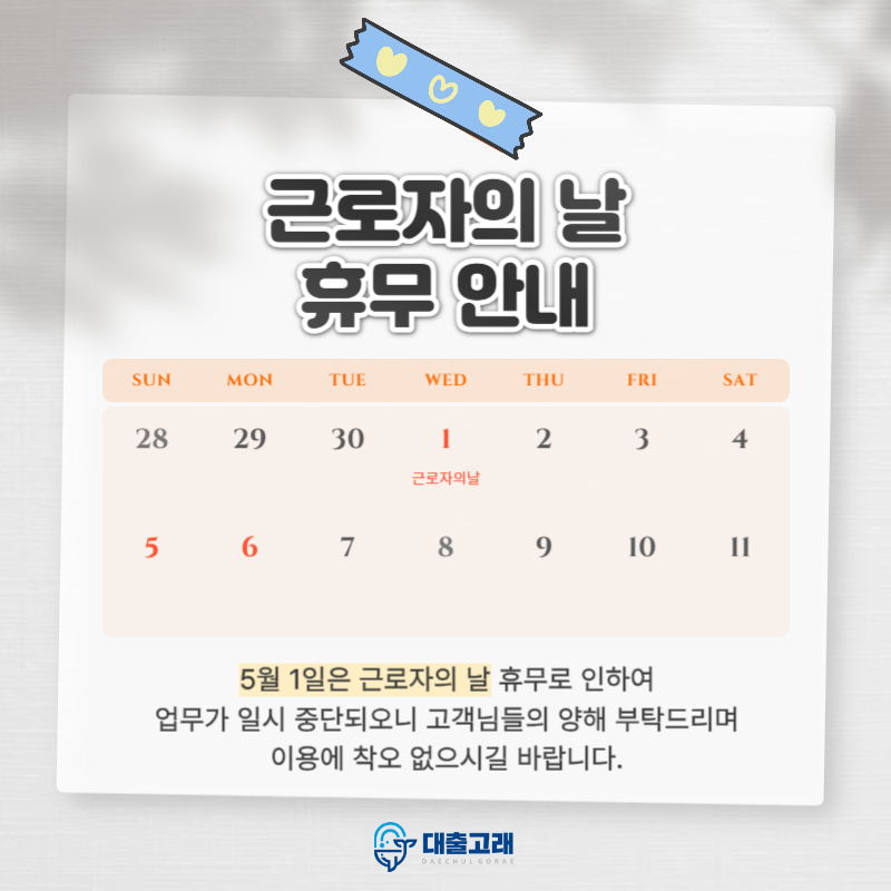 ● 정상 영업일 : 5월 2일(목) 부터 정상영업